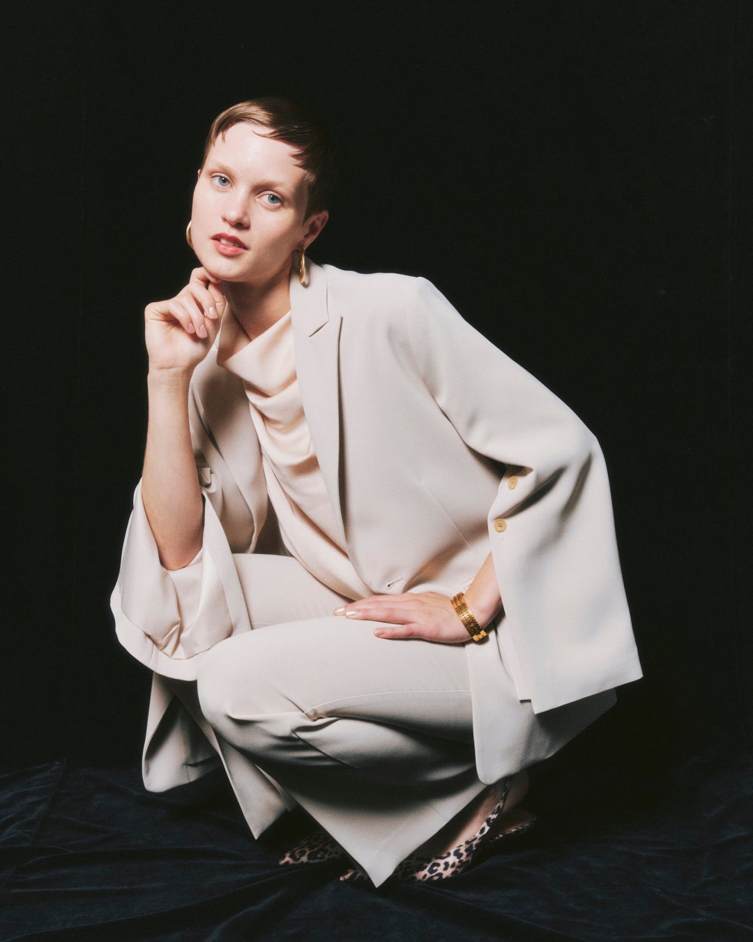 繊細で柔らかで包み込むようなワードローブとクールでスラリとしたシルエットを