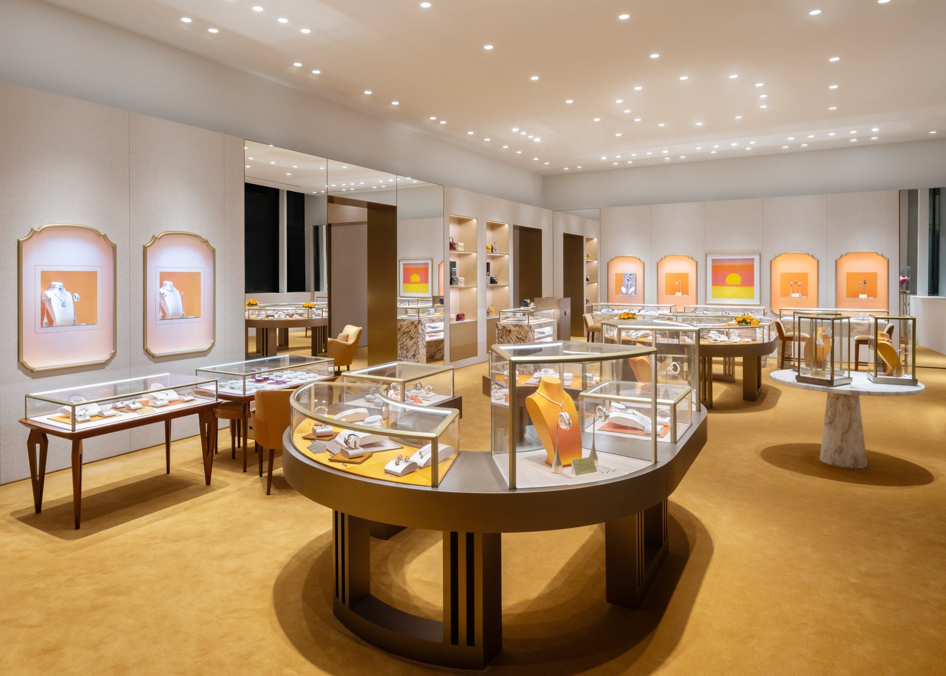 壮麗なローマの街がもっとも幻想的な顔を見せる瞬間。それは黄金の光に包まれた夕暮れどきです。サフランカラーで彩られた外観とフロアは、訪れる人を煌めくローマの夕暮れの光に包まれた世界へと誘います。ジュエリーとウォッチのほか、バッグなどのアクセサリーも揃えた豊富なコレクションを美しいディスプレイとともにご覧いただけます。