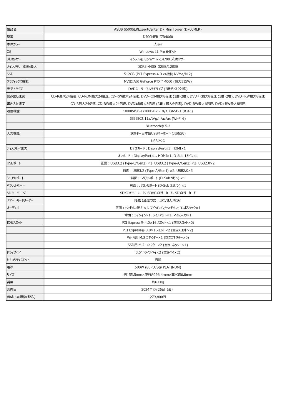 製品詳細:https://www.asus.com/jp/displays-desktops/tower-pcs/expertcenter/expertcenter-d7-mini-tower-d700mer/