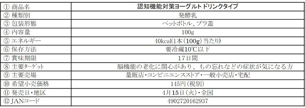 届出番号:J566(認知機能対策ヨーグルト ドリンクタイプ)