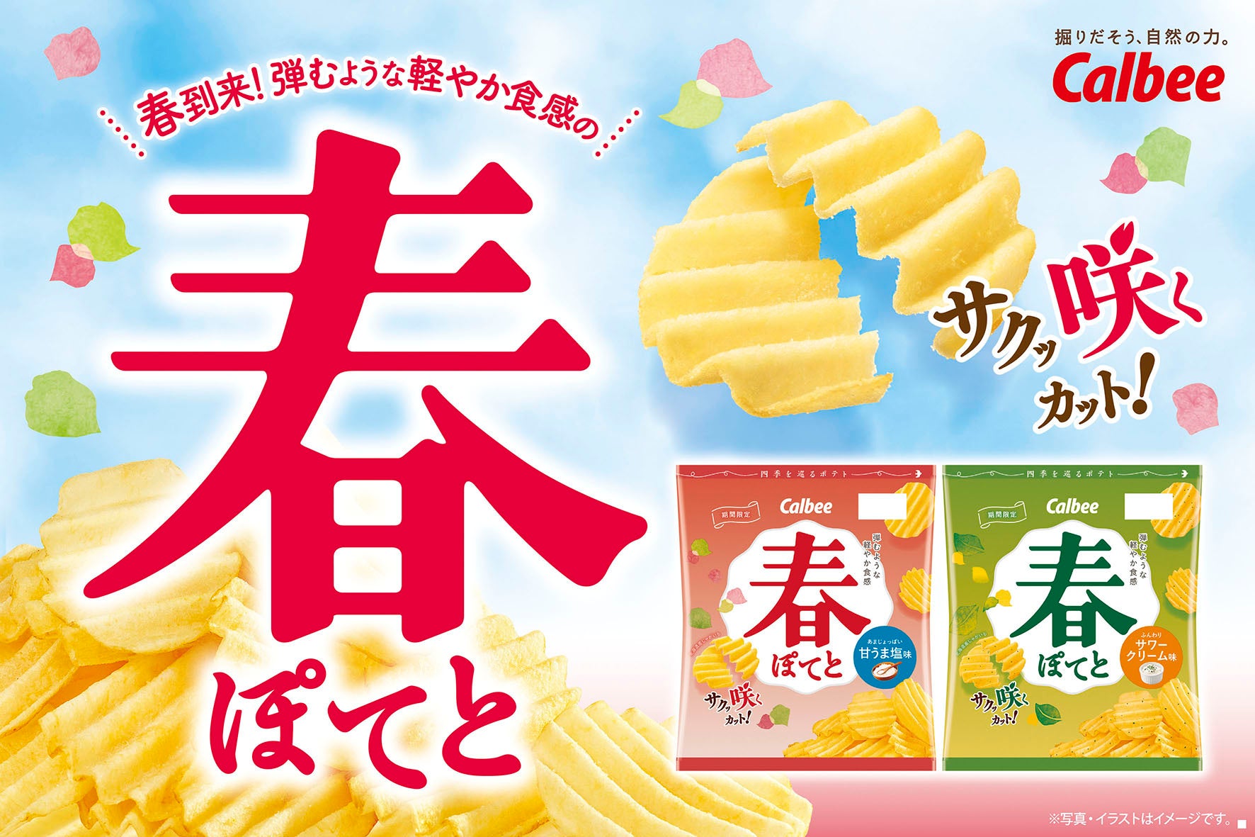 北海道産ジャガイモを使った春のポテトチップスが今年も!弾むような軽やかな食感が楽しめる『春ぽてと 甘うま塩味/ふんわりサワークリーム味』