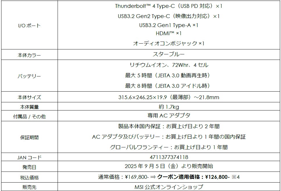 MSIストア 6周年を記念して日本国内で大人気の14インチゲーミングノートPC「Stealth 14」シリーズより、スペシャルモデルとして内部構成を厳選した「Stealth-14-AI-Studio-A1VEG-5061JP」を発売いたします。本製品は期間限定のクーポンコード「MSI6TH」を適用することで通常販売価格から25%OFF※1、※2お求めいただくことができます。
