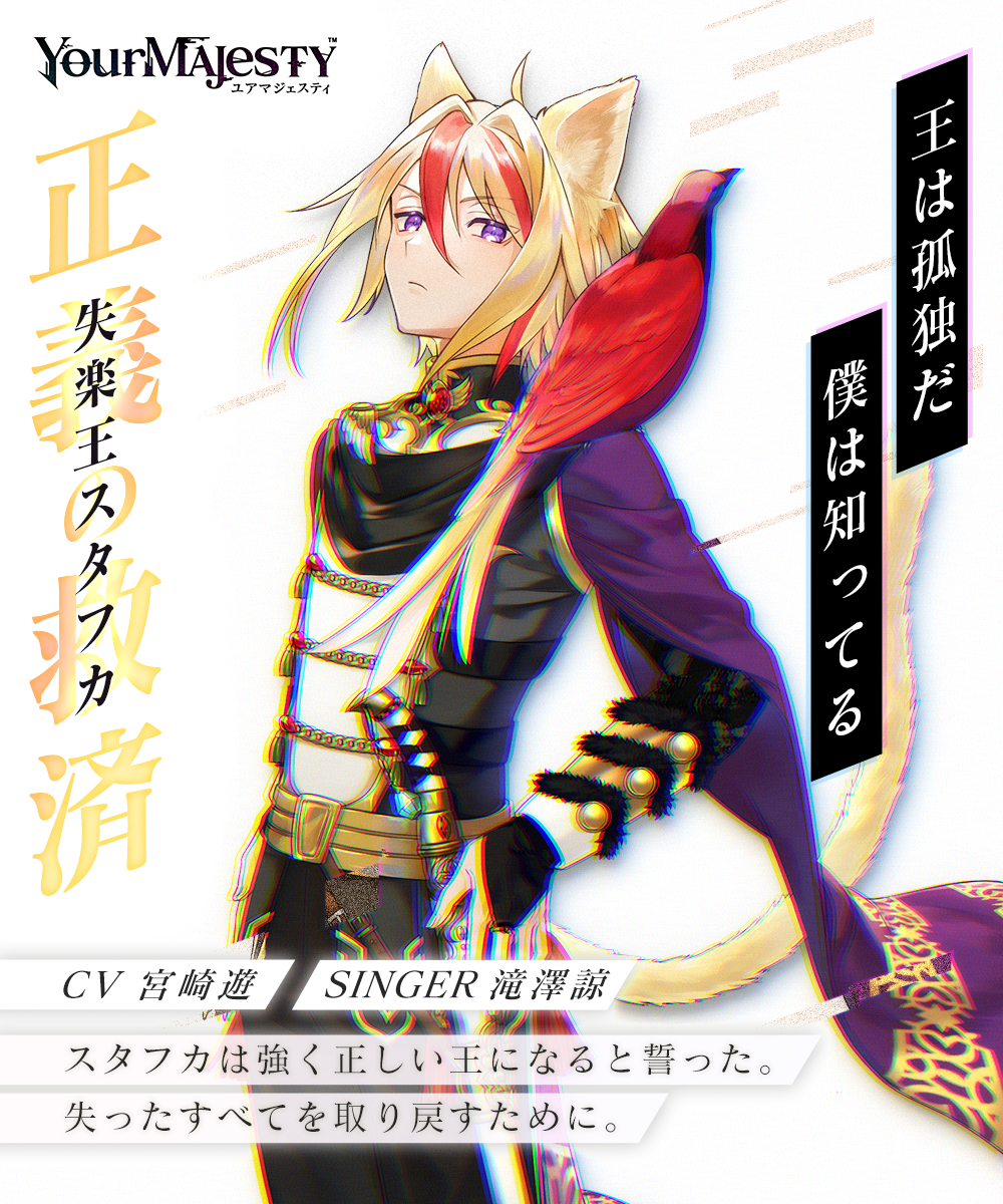『ユアマジェスティ』(略称:ユアマジェ)は、滅びに瀕した世界を舞台に転生した「異世界の王や女王」と紡ぐ【「正義」と「狂気」の物語】です。キャラクターごとに【声優】と【シンガー】を分けるダブルキャスト制を実施しています。10月9日(月・祝)のアプリゲームサービス終了後も、メディアミックスプロジェクトとして楽曲やストーリーなどのコンテンツ展開を継続してまいります。