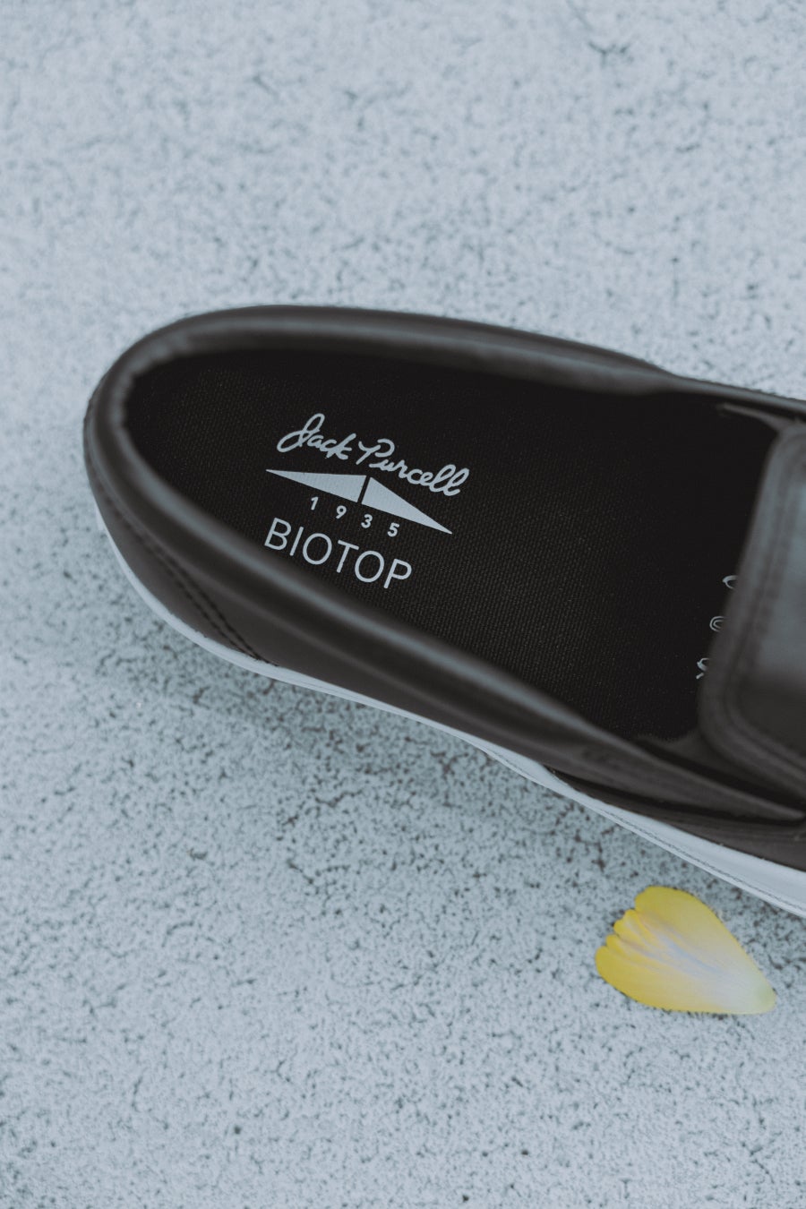また、こちらも「JACK PURCELL 1935」インライン同様、優れた通気性を実現するOrtholite®インソールを搭載し、本別注のポイントでもある「JACK PURCELL 1935」と「BIOTOP」のロゴをプリントしています。