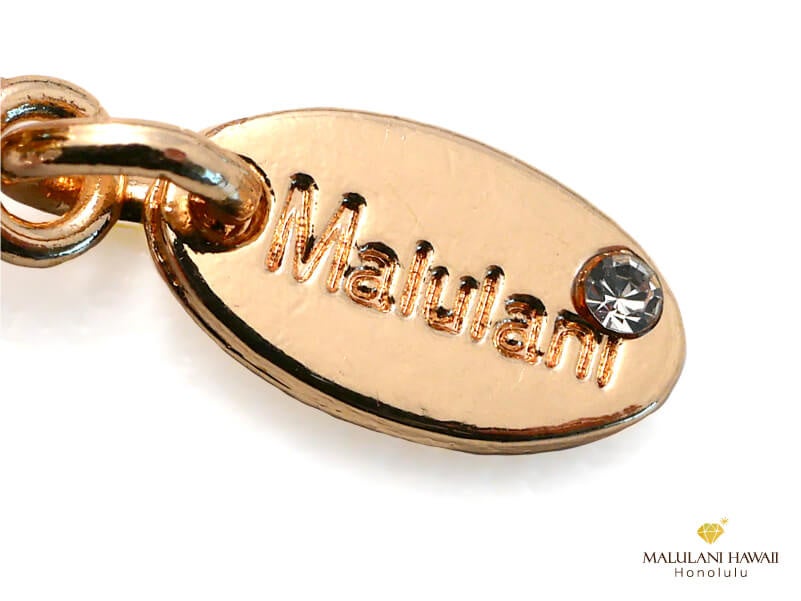 7種類からお選びいただけるオリジナルチャームには、「神に護られた」という意味のハワイ語「Malulani」と刻印。
