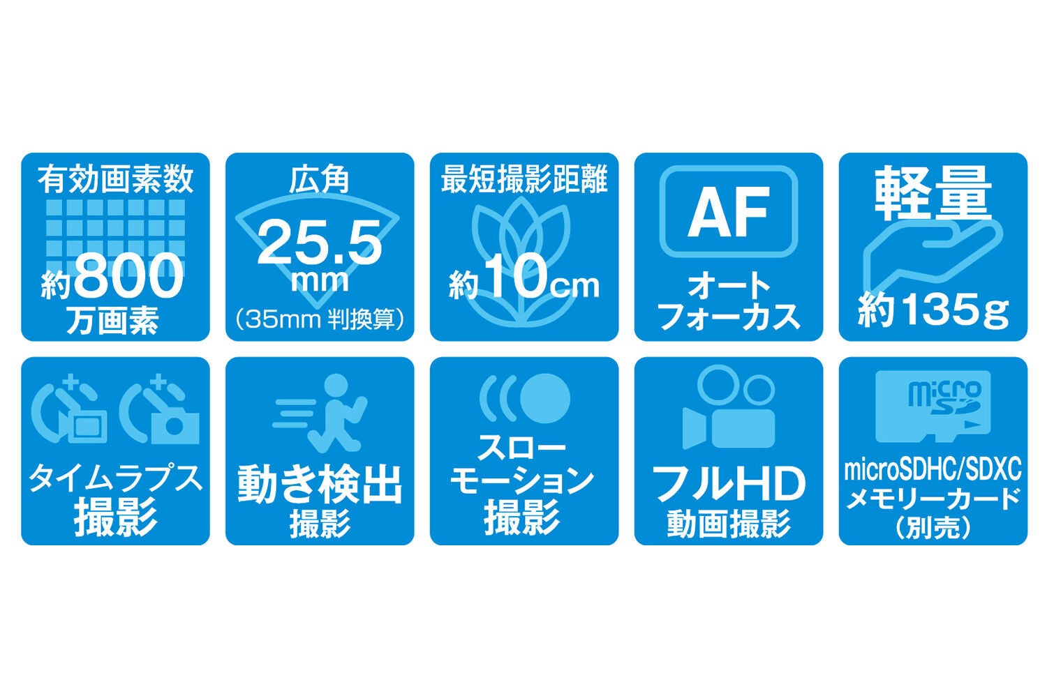 他にもタイムプラス撮影、動き検出機能、スローモーション撮影など多機能なカメラです。