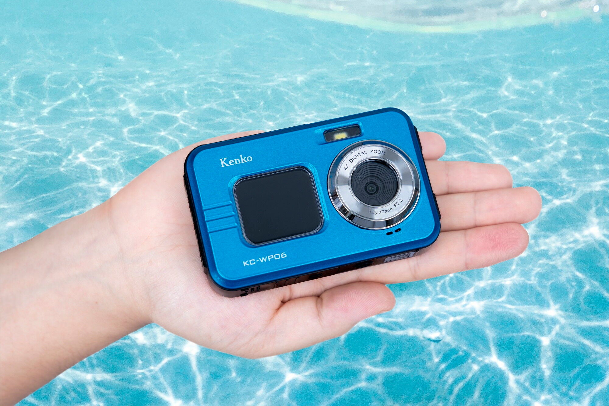 防塵・防水でアウトドアに最適。自撮りに便利な前面モニター付「防水デジタルカメラ KC-WP06」