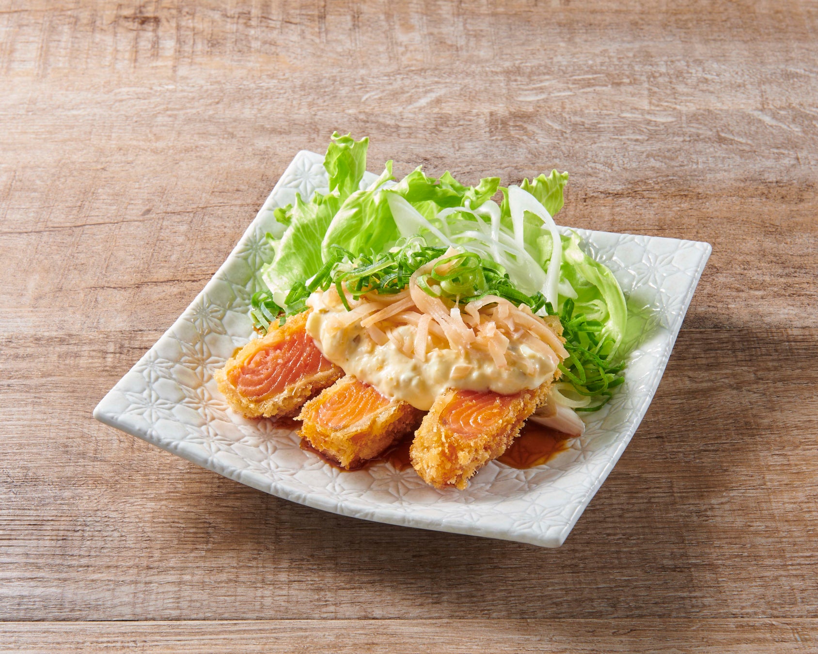 ◯三陸広田湾産 サーモンカツ ガリタルタル添え 599円(税込658円)