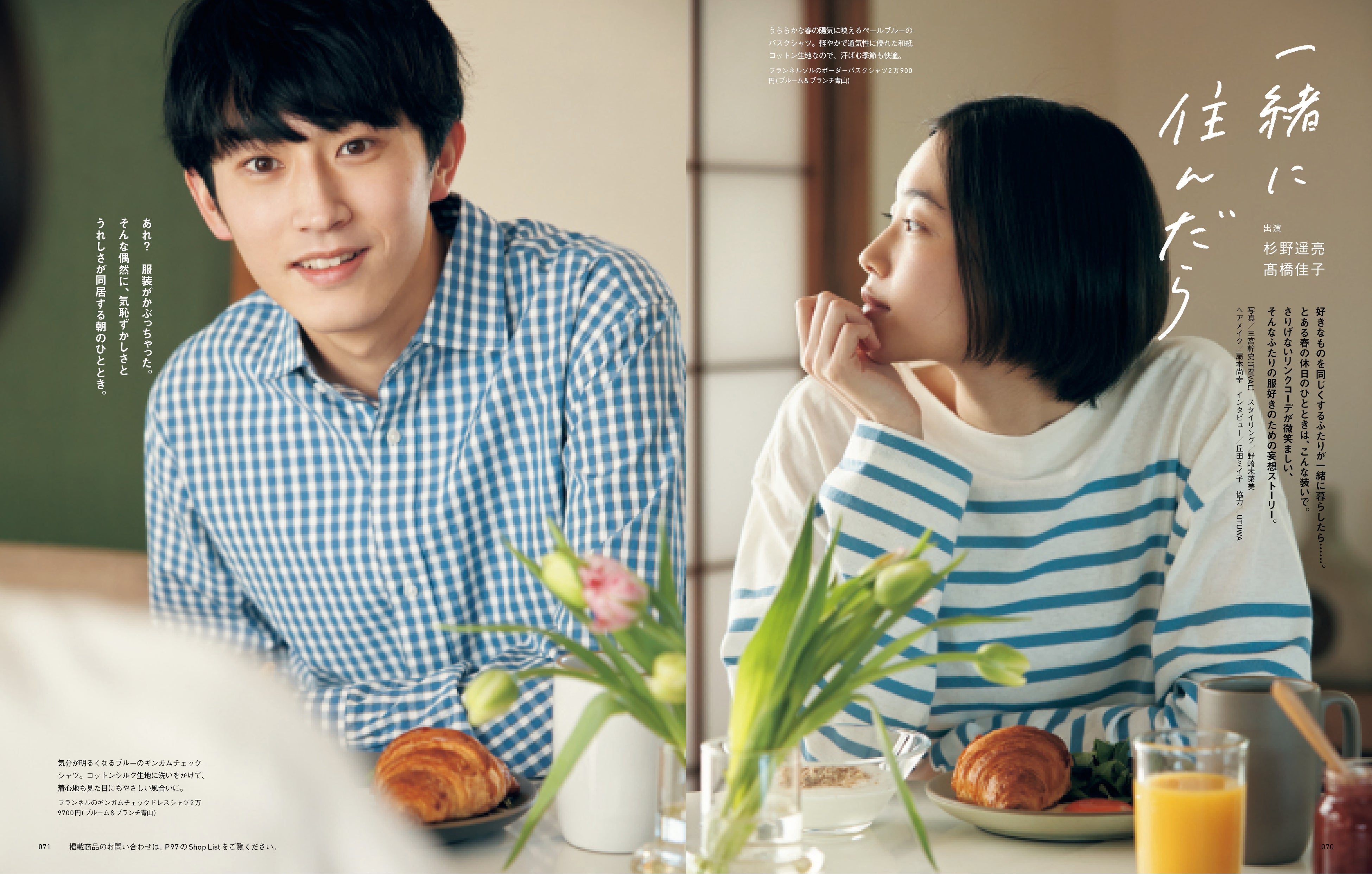 男女の別なく着られてシンプルで飽きのこない服、さらには老若男女に好かれる清潔感と親しみやすい印象のファッションを提案します。杉野さんが登場するページの装いも、まさに「マイルドベーシック」。パートナーとふたりでこんな風に暮らしたい、という世界観を表現したグラビア企画「一緒に住んだら」では、「マイルドベーシック」な服でリラックスしている杉野さんの表情を存分に楽しめます。