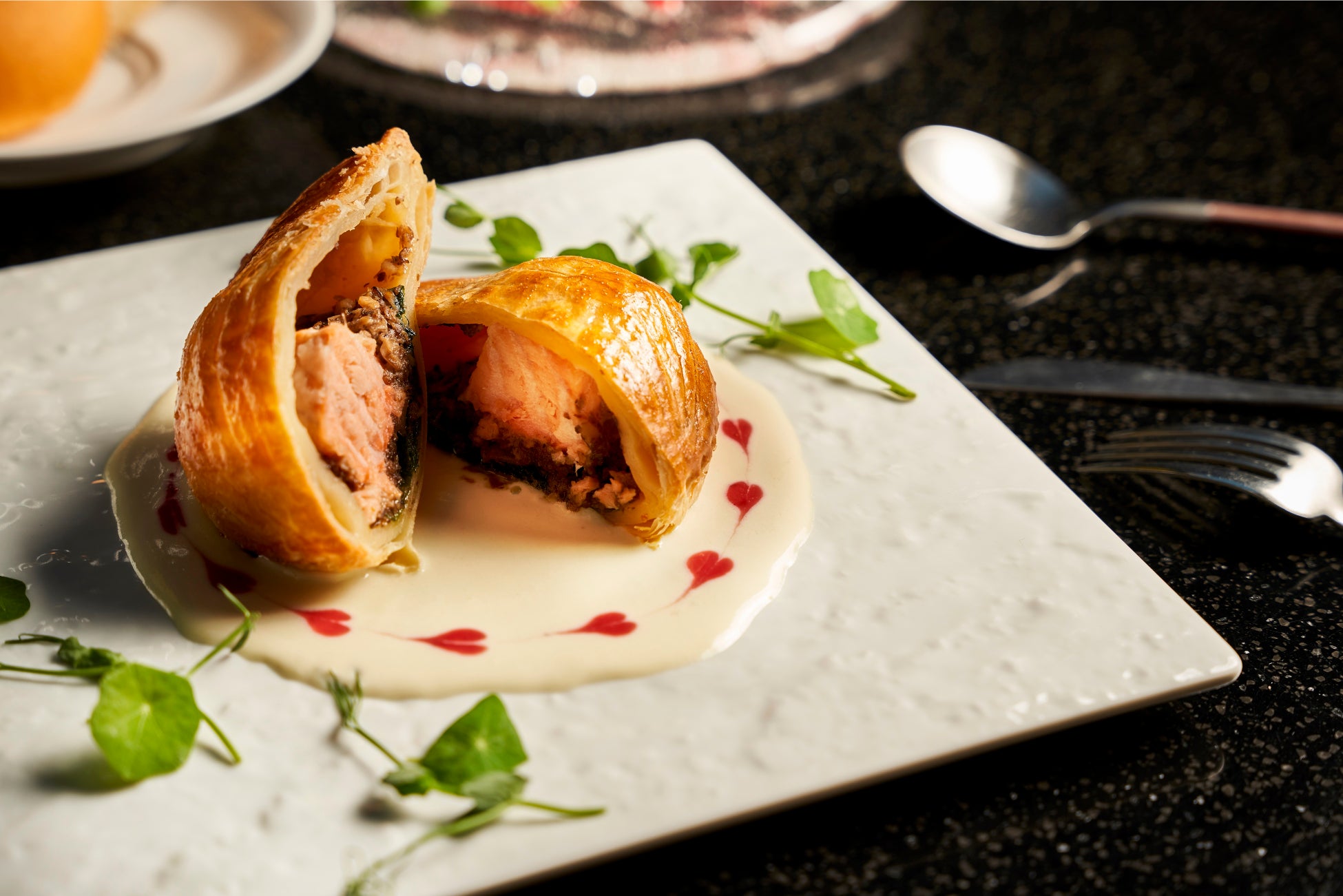 魚:サーモンのパイ包み焼き ヴァンブランソース