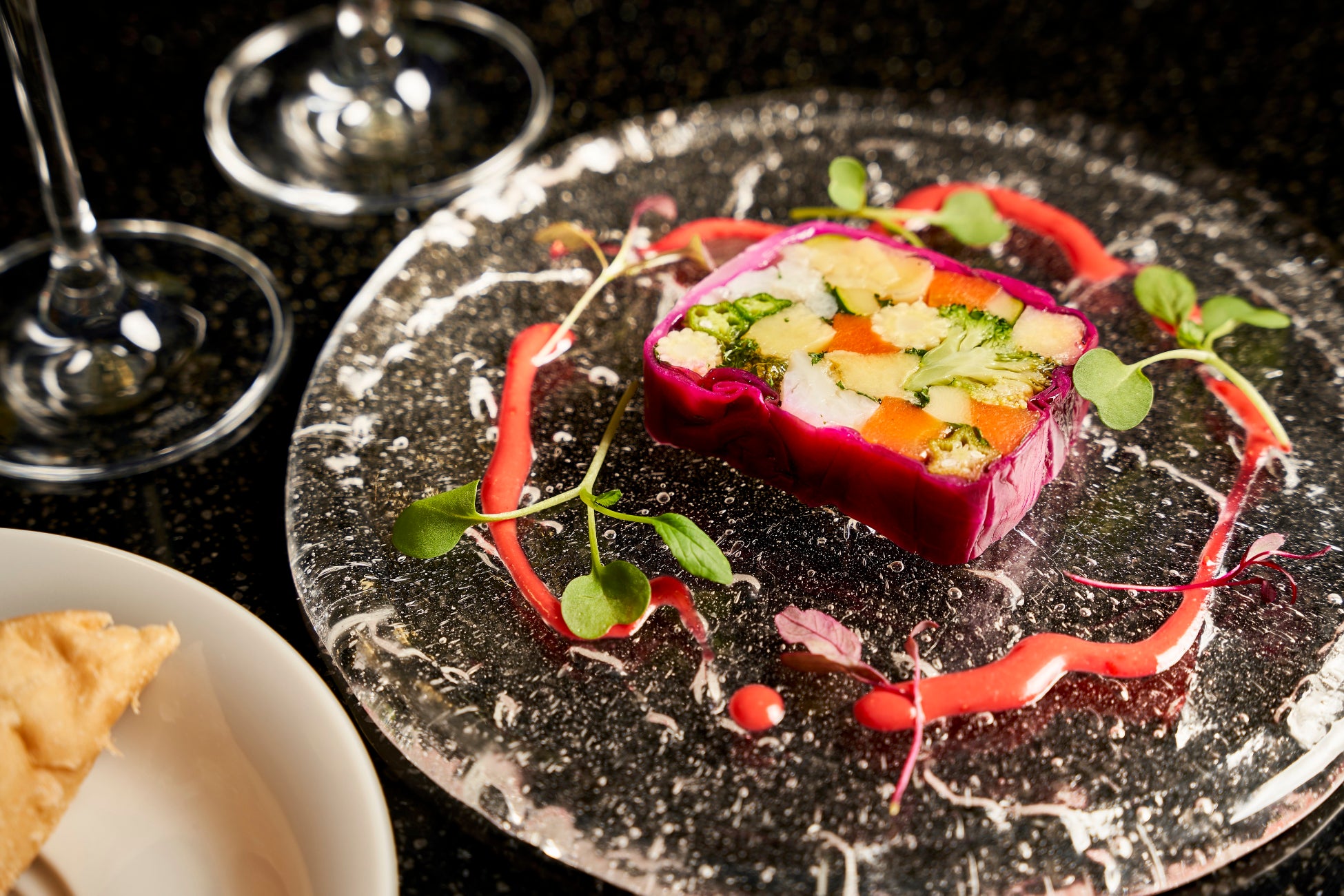 1)前菜:彩り野菜のプレステリーヌ ベリーのビネグレット
