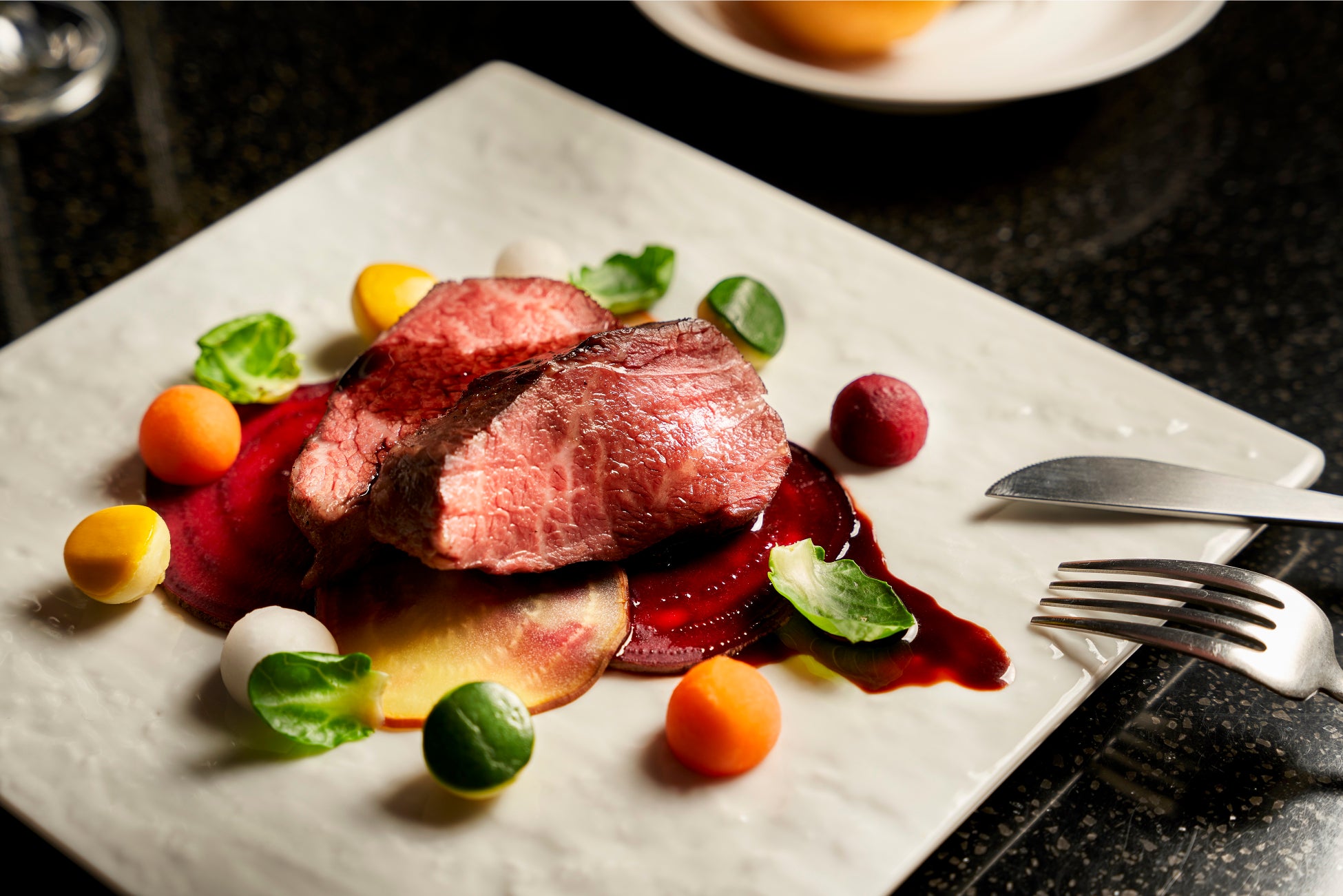 肉:牛ランプ肉のロースト カカオソース