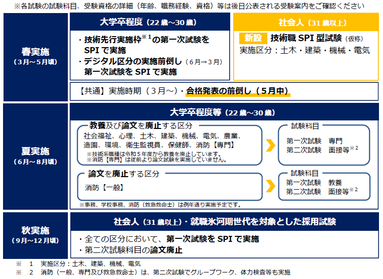 今回の変更により、公務員志望の方をはじめ、民間企業への就職を考えている方や転職活動をされている方等、更に多くの方が受験しやすくなります。