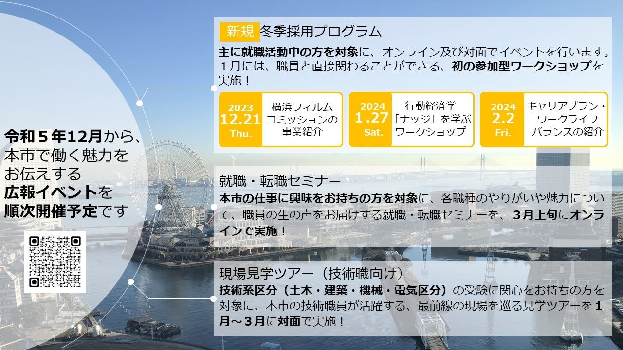 なお、令和5年12月21日(木)から、本市で働く魅力をお伝えする広報イベントを順次開催予定です。