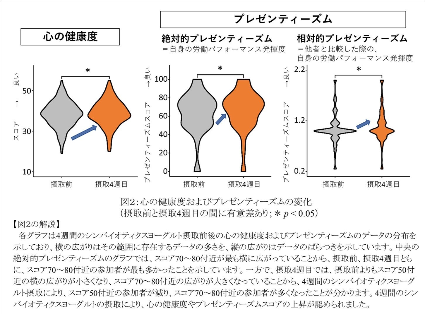ビフィズス菌BB536とラクチュロースを含むシンバイオティクスヨーグルトが整腸作用に加えて、心の健康度や労働パフォーマンスを改善することが明らかに