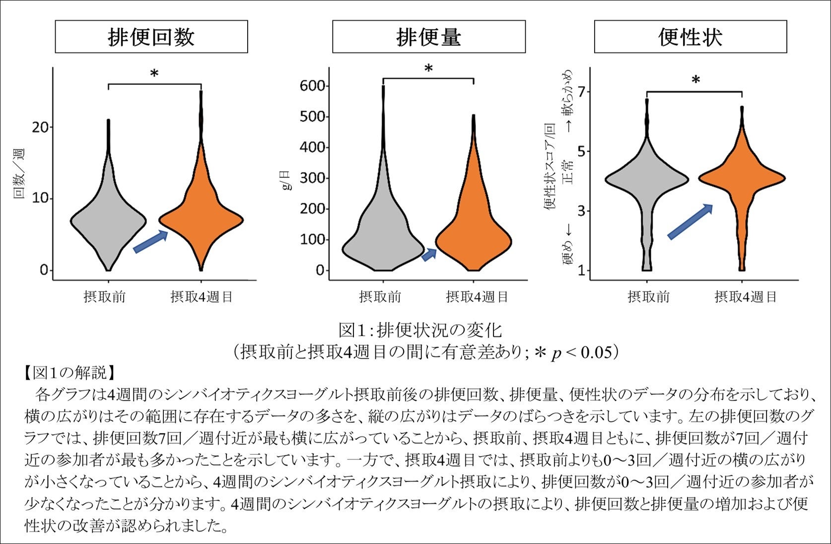 シンバイオティクスヨーグルトを4週間摂取することにより、以下の結果が得られました。