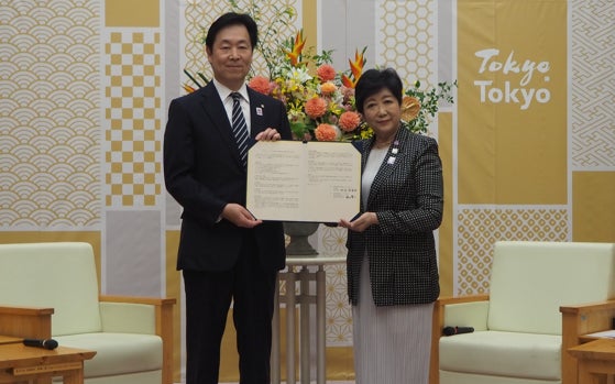 (左から 東京ガス 取締役 代表執行役社長 CEO:笹山 晋一、東京都知事:小池 百合子)