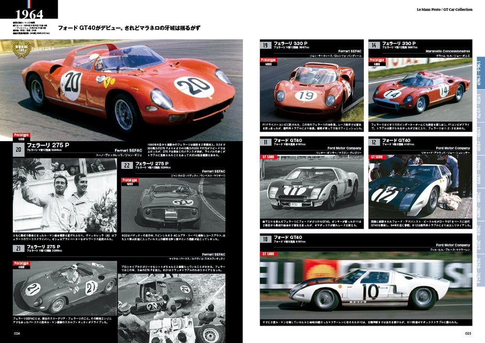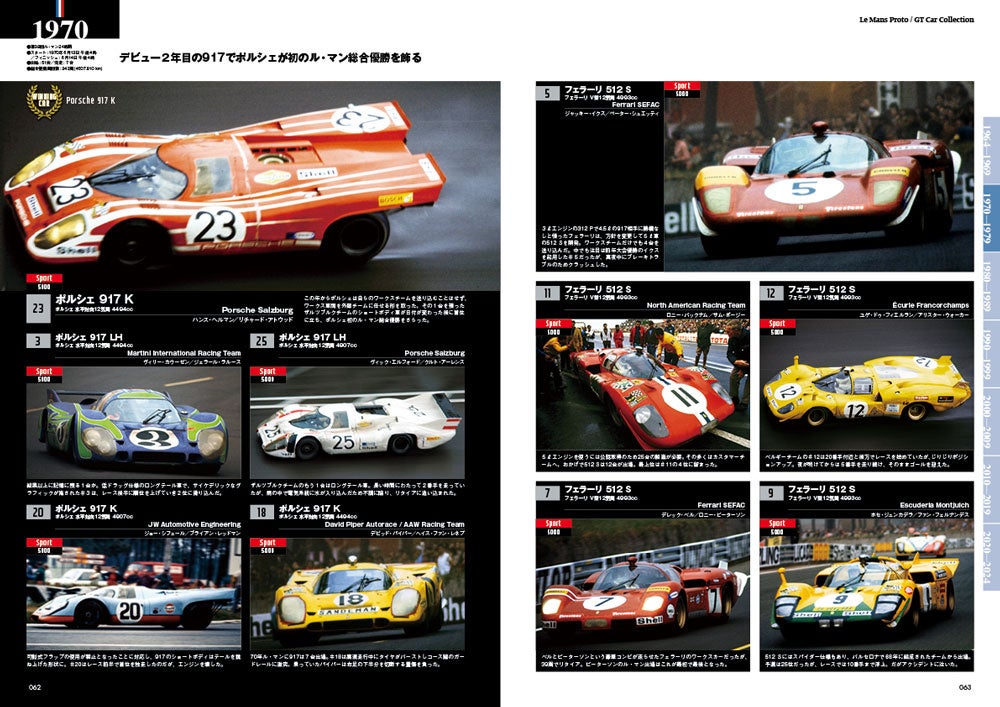 年ごとに参戦車両を紹介しているので、ル・マン24時間レース、61回の歴史のなかでの車両の進化や変遷、車両規則の変更などの流れを概観することできます。