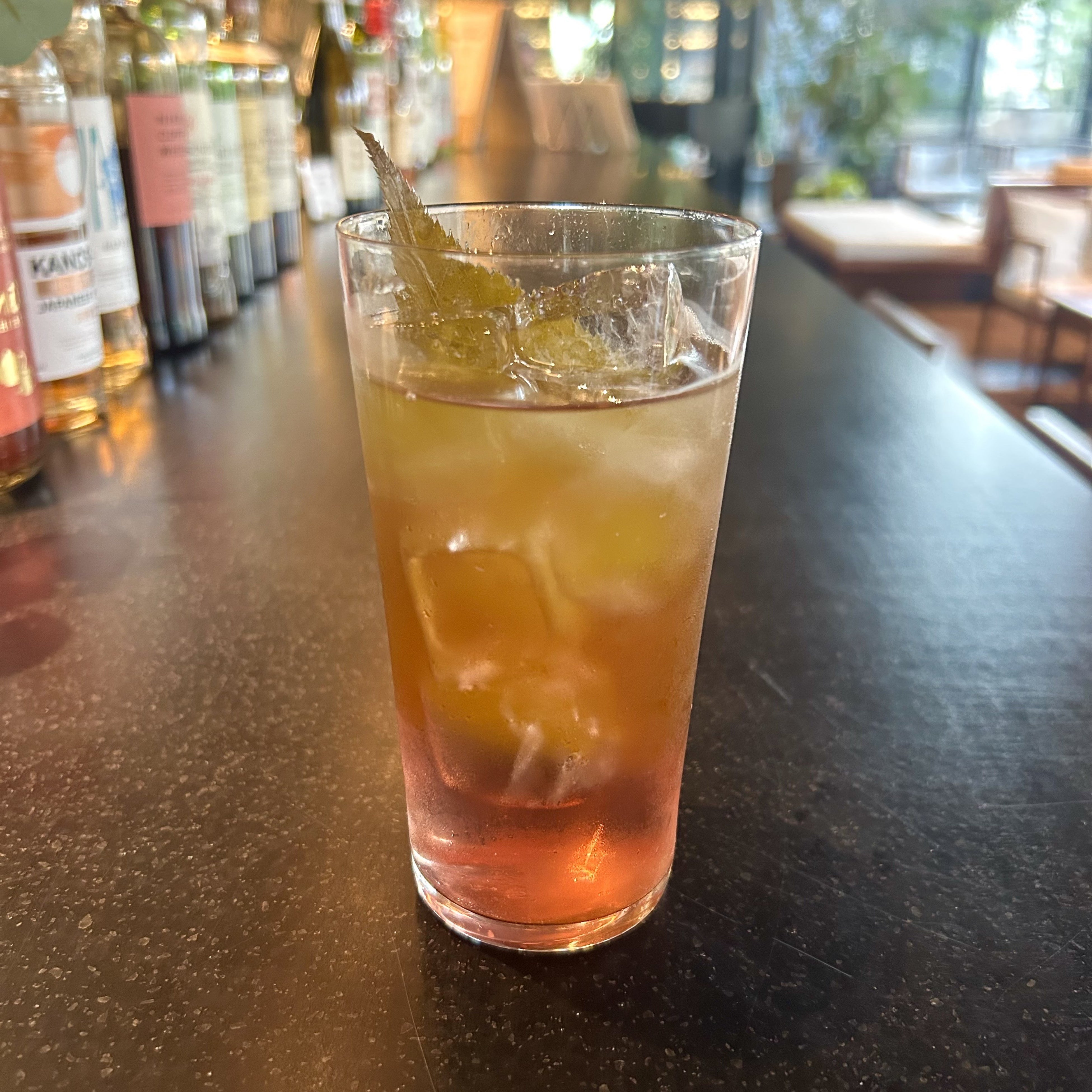 淡い桜色と柔らかな桜の香りが特徴の桜シロップに、スパークリング日本酒を併せた、和のカクテル。桜の葉の塩味が全体を引き締め、すっきりと飲みやすい、一杯に仕上がりました。