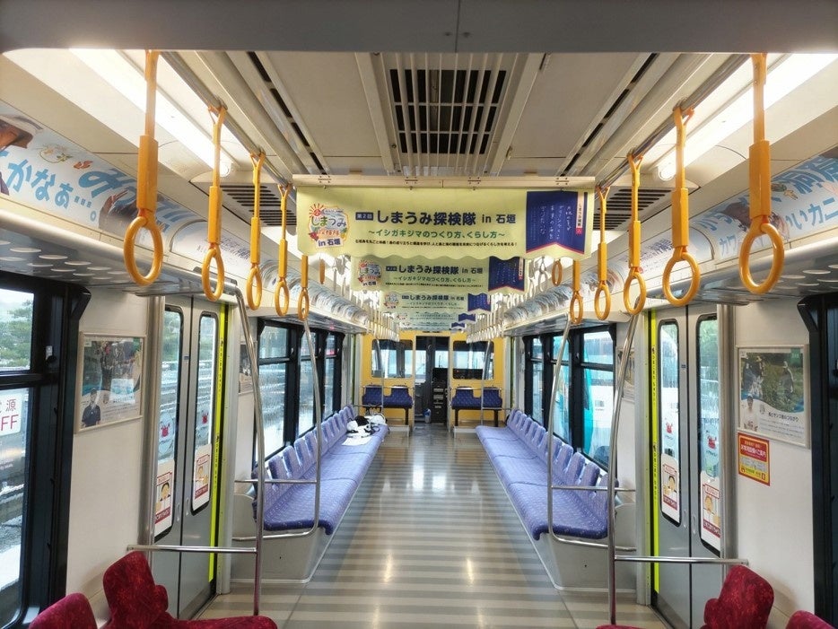 海と日本PROJECTin沖縄県実行委員会は、沖縄都市モノレールと連携して、2022年9月23日(金)~25日(日)に実施した体験学習イベント「第2回しまうみ探検隊in石垣」の世界観を施した特別車両の内覧会を、11月6日(日)に開催します。一車両内を特別にジャックし、2022年11月1日(火)から30日(水)まで運行します。