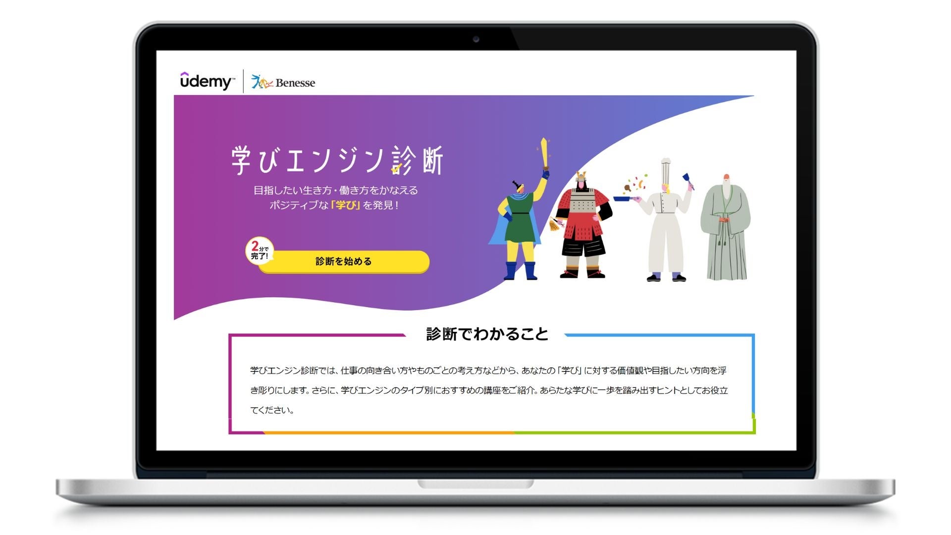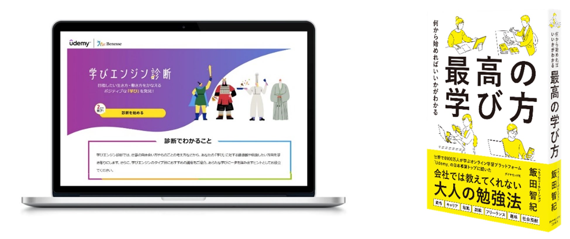 株式会社ベネッセコーポレーション(本社:岡山県岡山市、代表取締役社長:小林 仁、以下「ベネッセ」)は、社会人向けのオンライン動画学習サービス「Udemy(ユーデミー)」を2015年から国内展開しています。このたび、ベネッセが2022年より毎年実施している「社会人の学びに関する意識調査」の2024年版の最新結果を公表しました。これらの調査結果をもとに、社会人の学びに対するさらなる機会創出を目指し、本日より「学びエンジン診断」サイト(https://udemy.benesse.co.jp/type-shindan/)を公開し、書籍『何から始めればいいかがわかる 最高の学び方』(著者:ベネッセコーポレーション 飯田智紀、出版:ダイヤモンド社)を全国の書店およびAmazonなどのオンラインサイトで発売します。