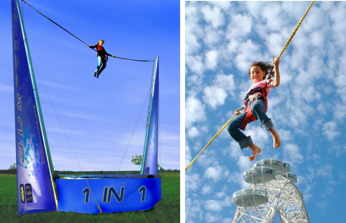 期間限定でヨーロッパ生まれの新感覚トランポリン「JUMP ZONE」が登場いたします。トランポリンを蹴るジャンプ力+トランポリンの反発力+バンジーゴムの伸縮力+ウインチモーターの牽引力を利用して、高さ最大 7m もの大ジャンプができる新感覚のアトラクションで、ジャンプしながらお花見を楽しめます。