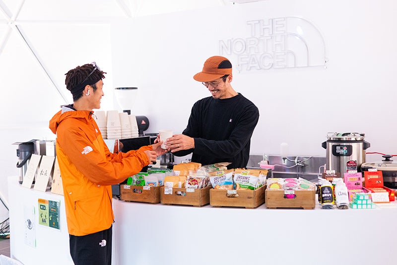 会場内に、物販およびカフェ機能を備えたザ・ノース・フェイスのドーム型テント(直径14m / 11m)を2張設置し、トレイルランニングシューズやランニングコレクションの販売、カフェメニューの提供を行います。カフェ内では、テーピング講座や環境保全に関するトークイベント、国内外の女性アスリートを囲んでドリンクを飲みながらコミュニケーションを楽しむWomen Athletes Meetupを実施します。