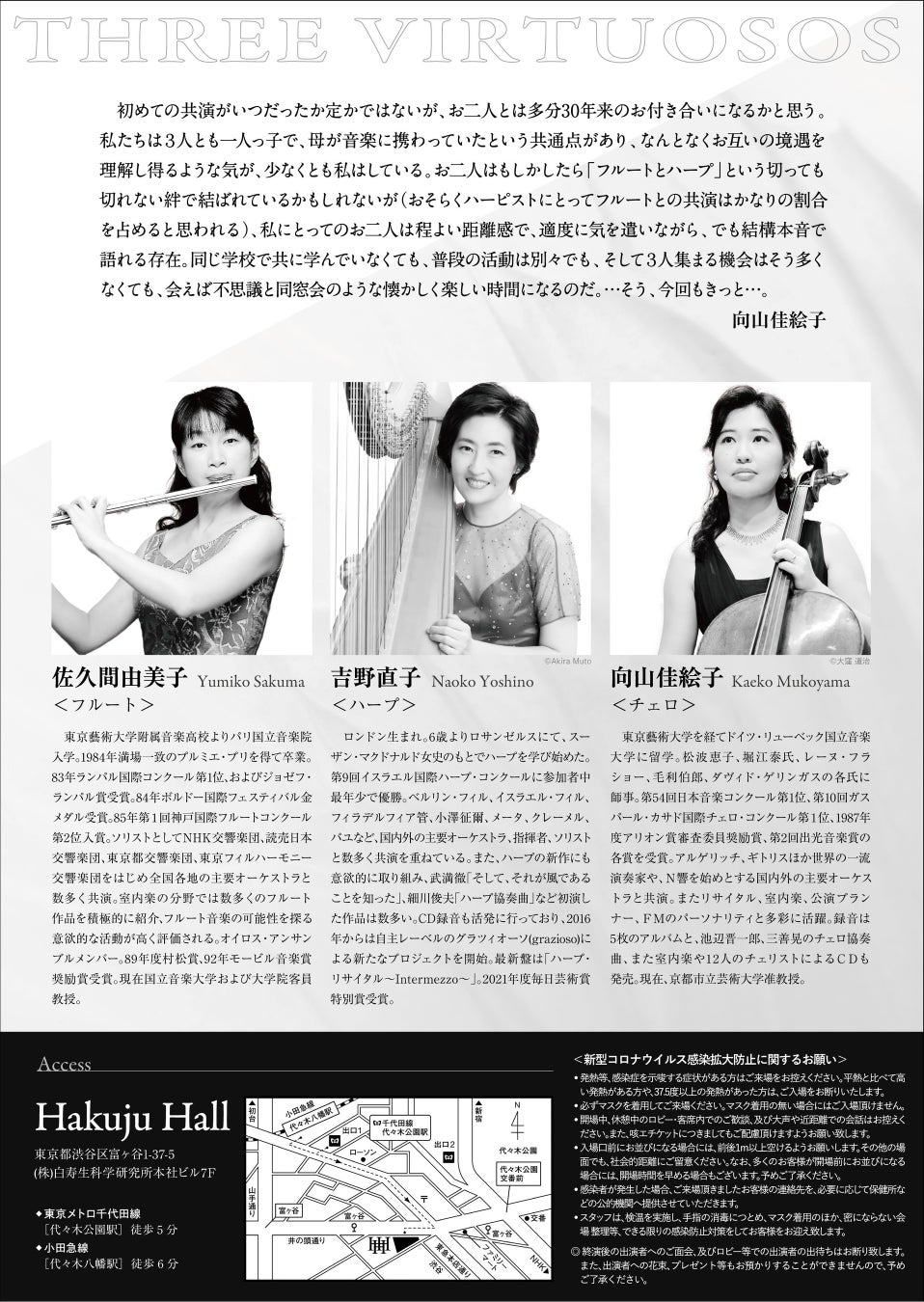 『三人のヴィルトーゾ 佐久間由美子・吉野直子・向山佳絵子』~フルート、ハープ、チェロ~