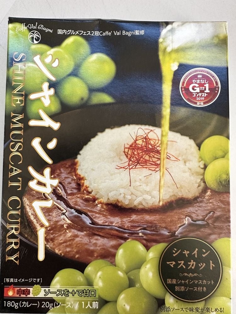 人気カフェ監修のスパイスが効いたカレー。別添えの山梨県産シャインマスカットソースをかけて“味変”も。