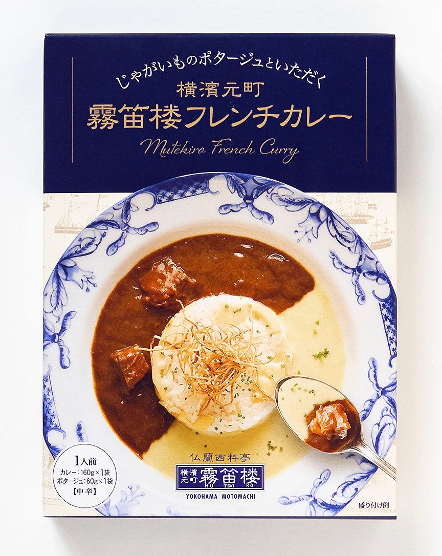 1981年横浜元町に開業したフレンチレストランの、国産牛を使ったコクと深みのある欧風カレーと、昆布だしを使用した北海道産じゃがいものポタージュのセット。