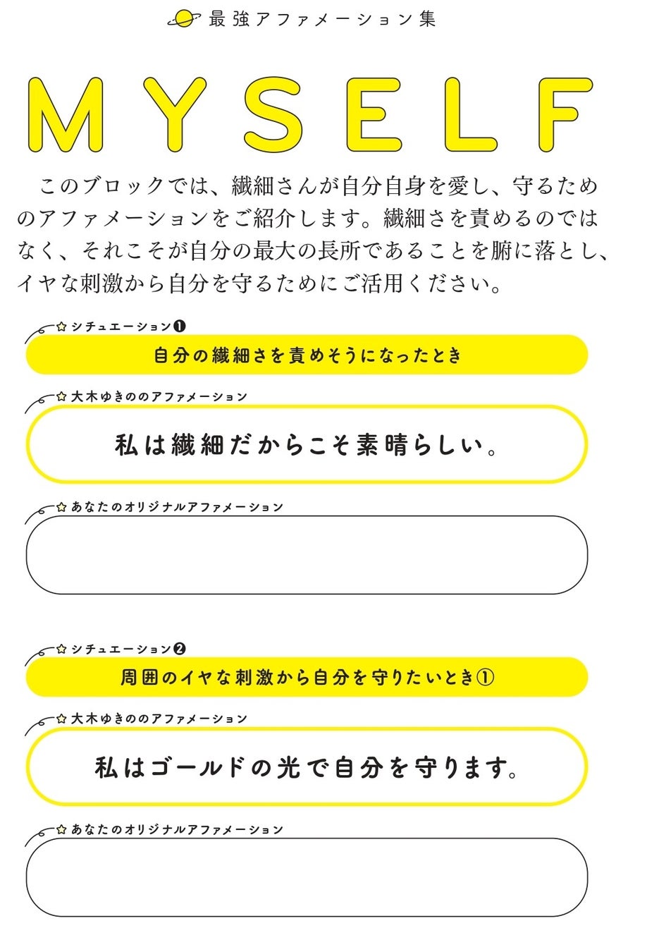 上記は大木氏が考えたアファメーションですが、読者ご自身が作ったアファメーションも、自由に書けるようになっています。