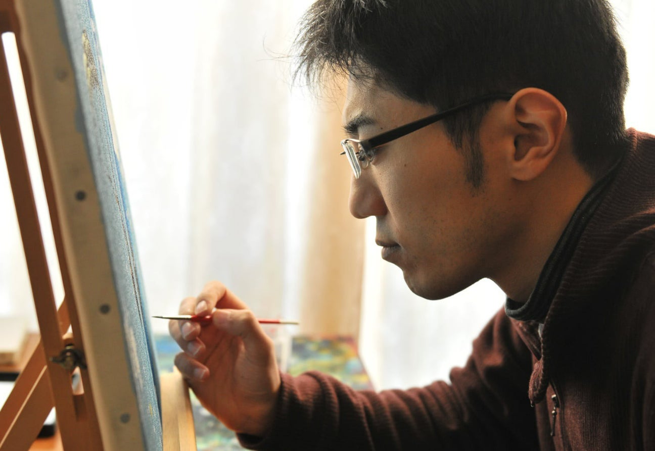 緑内障による視覚障がいを機に画家を志し、各地で個展を開催。