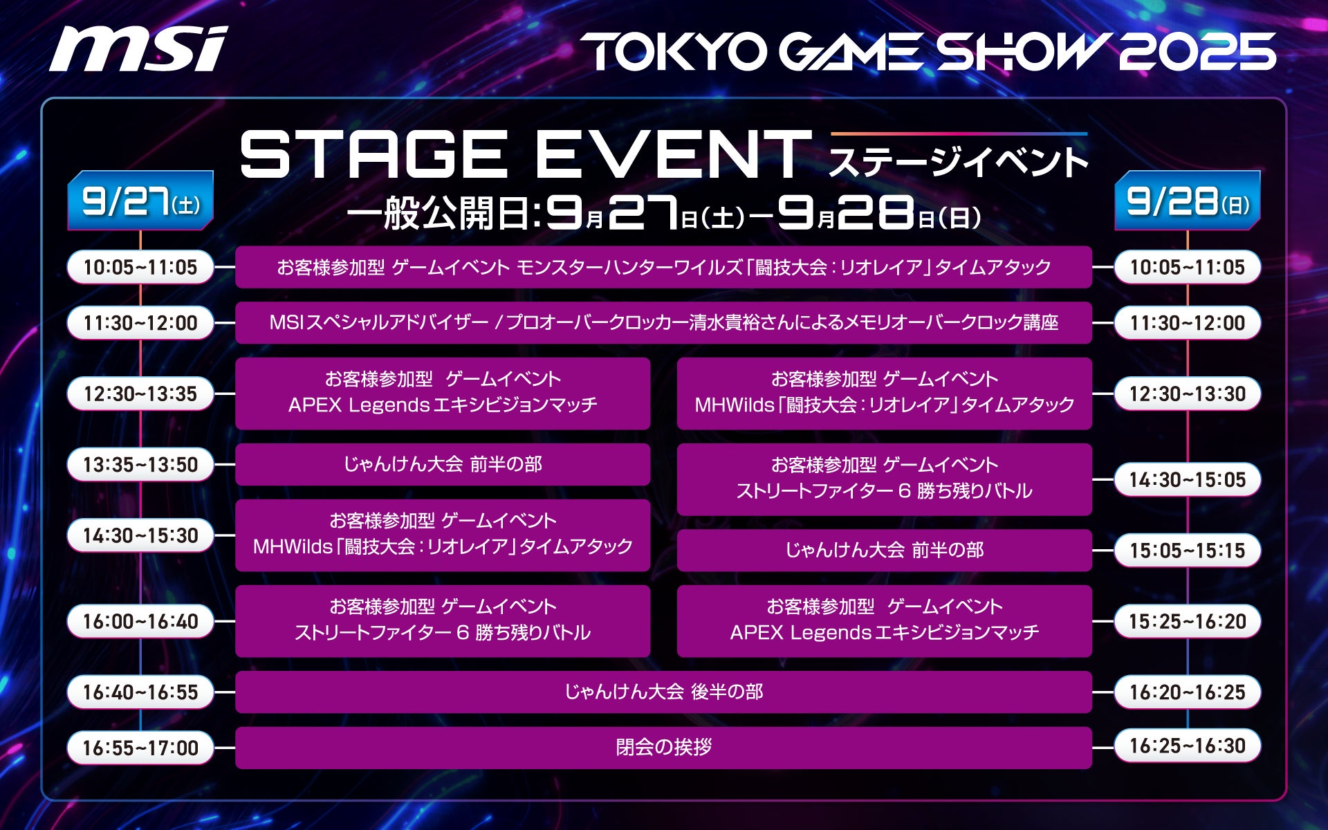この度、エムエスアイコンピュータージャパン株式会社は、2025年9月25日(木)から9月28日(日)の4日間に渡って開催される世界最大級のゲーム展示会『東京ゲームショウ2025』へブース出展することをお知らせいたします。