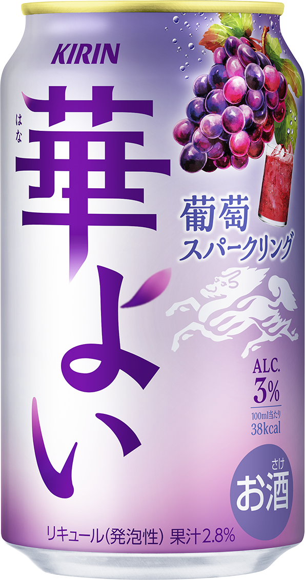 今回のリニューアルでは、果実のイラストと「スパークリング」の文字をパッケージの上部に配置し、背景色をより明るい印象にすることで、好評いただいている「キリン 華よい」ならではの豊かな果実味と軽やかなおいしさがより伝わるデザインにブラッシュアップしました。中味をリニューアルする「キリン 華よい 葡萄スパークリング」はぶどうの香りや果皮の渋みを効かせることで、果実味と程よいお酒感を高め、よりお酒でしか味わえないおいしさに進化しました。