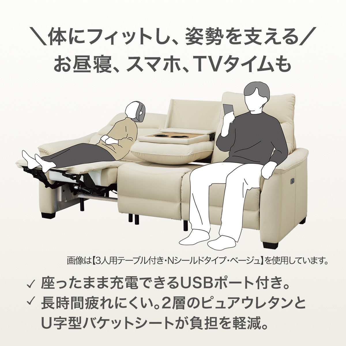 【商品名】3人用電動リクライニングソファ(テーブル付き) Nビリーバ3(2モーター)