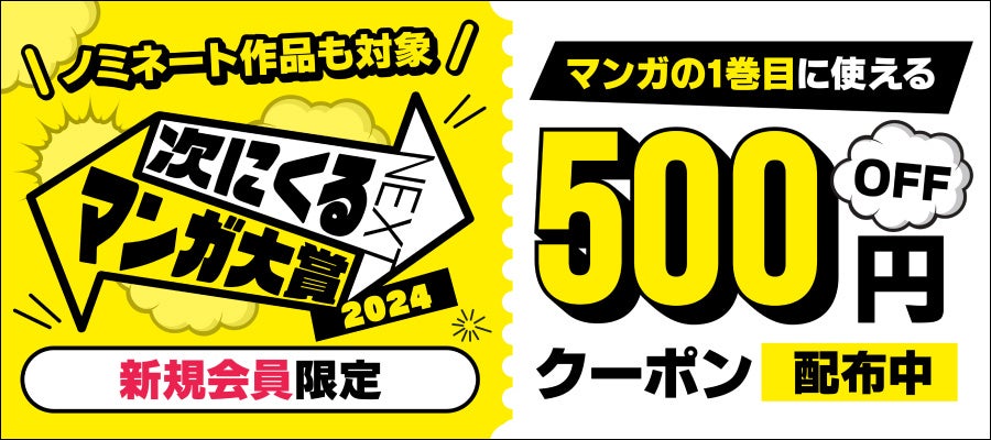 「次にくるマンガ大賞2024」ノミネート作品にも使える マンガ1巻目が500円OFFになる新規会員限定クーポンをBOOK☆WALKERにて配布中