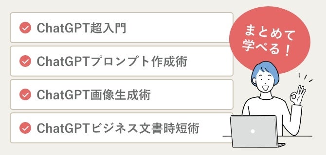 超入門講座、プロンプト作成講座、画像生成講座、ビジネス文書時短講座がセットになっています。