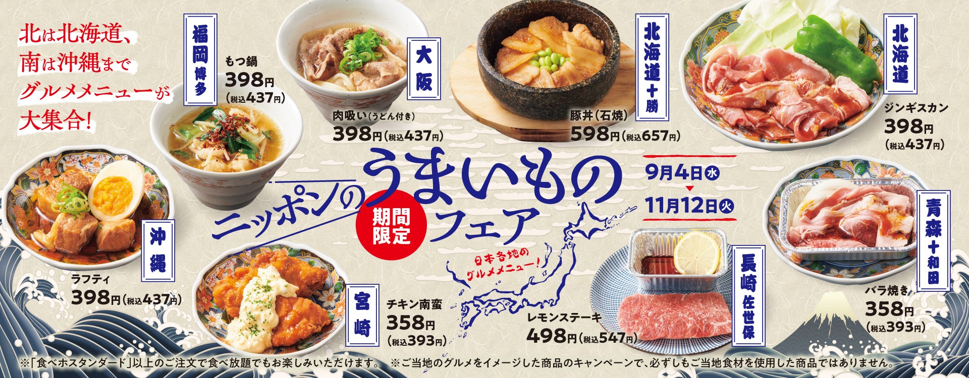 『焼肉の和民』バラエティ豊かに北は北海道、南は沖縄までグルメメニューが大集合!「ニッポンのうまいものフェア」開催‼