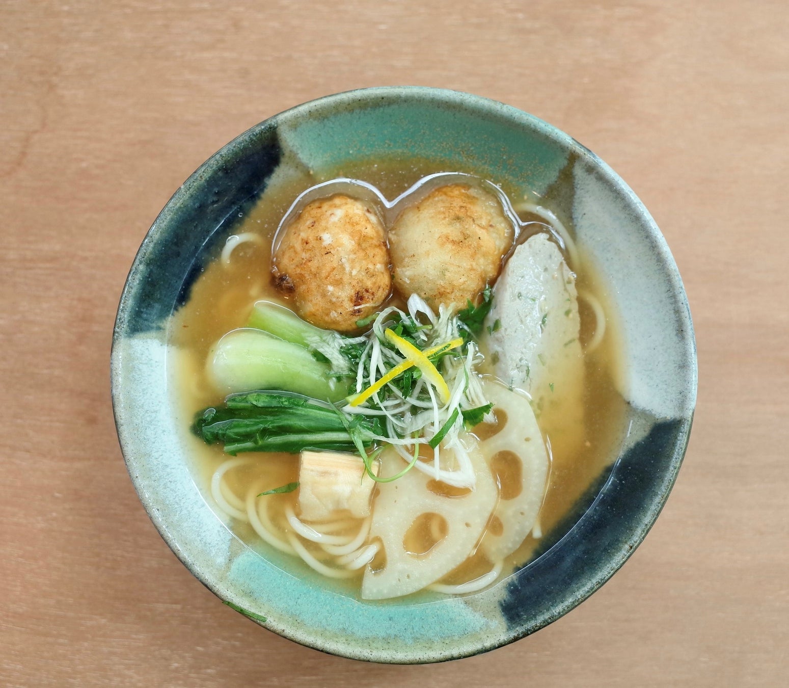 カワハギの出汁をベースに、魚醤“いしる”と、“こんか(へしこ)”の糠が隠し味。具材は北陸の海の幸を使ったつみれやお揚げ、加賀蓮根など格調高くユニークな味わい。