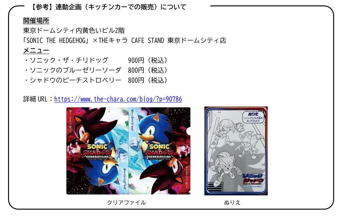 画のSNSでのシェア画面やポスター画像を提示いただいたお客様には「ソニック クリアファイル」と