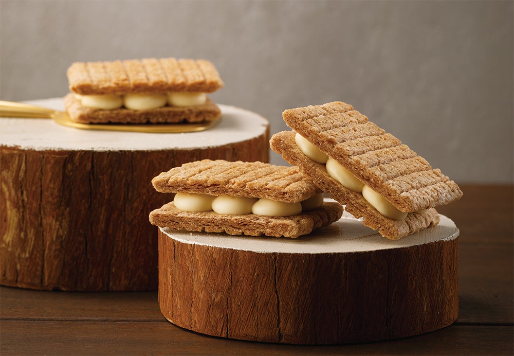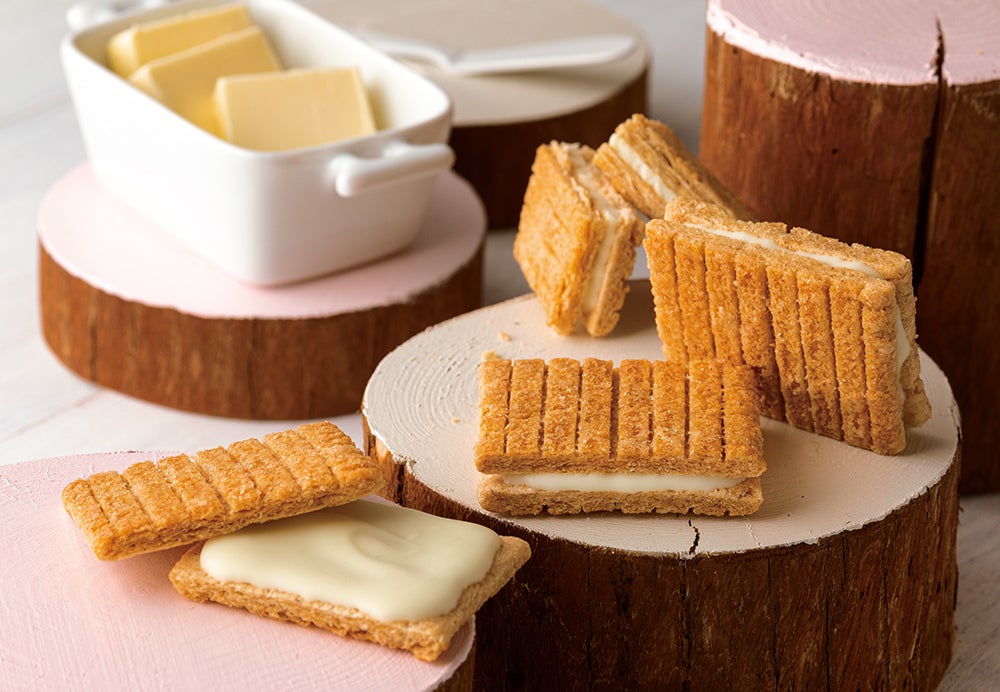 シュガーバターでこんがり焼いたシリアル生地の、くせになるサクサク食感。一度食べたら忘れられなくなるミルキー感が自慢のホワイトショコラ。「シュガーバターの木」で不動の人気№1を誇る、名作サンドです。