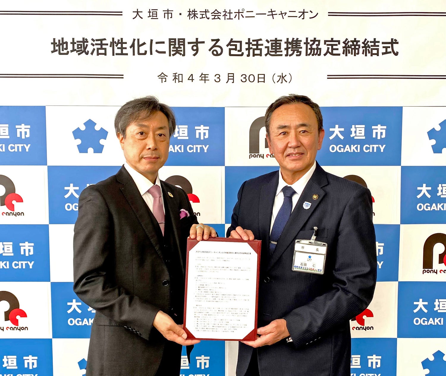 大垣市(岐阜県 市長:石田 仁)と株式会社ポニーキャニオン(本社:東京都港区、社長:吉村 隆)は、大垣市における定住人口及び交流人口の増加、情報発信、地域活性化のさらなる推進を図るため、包括連携に関する協定を締結いたしました。