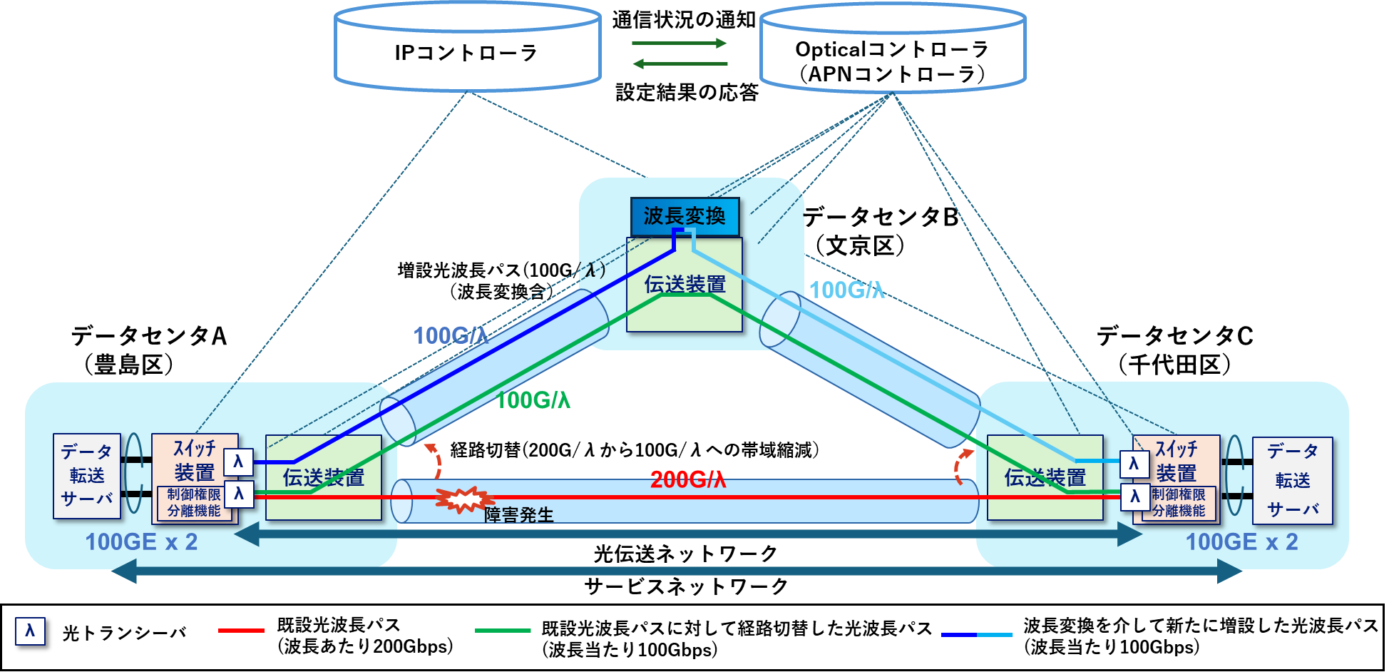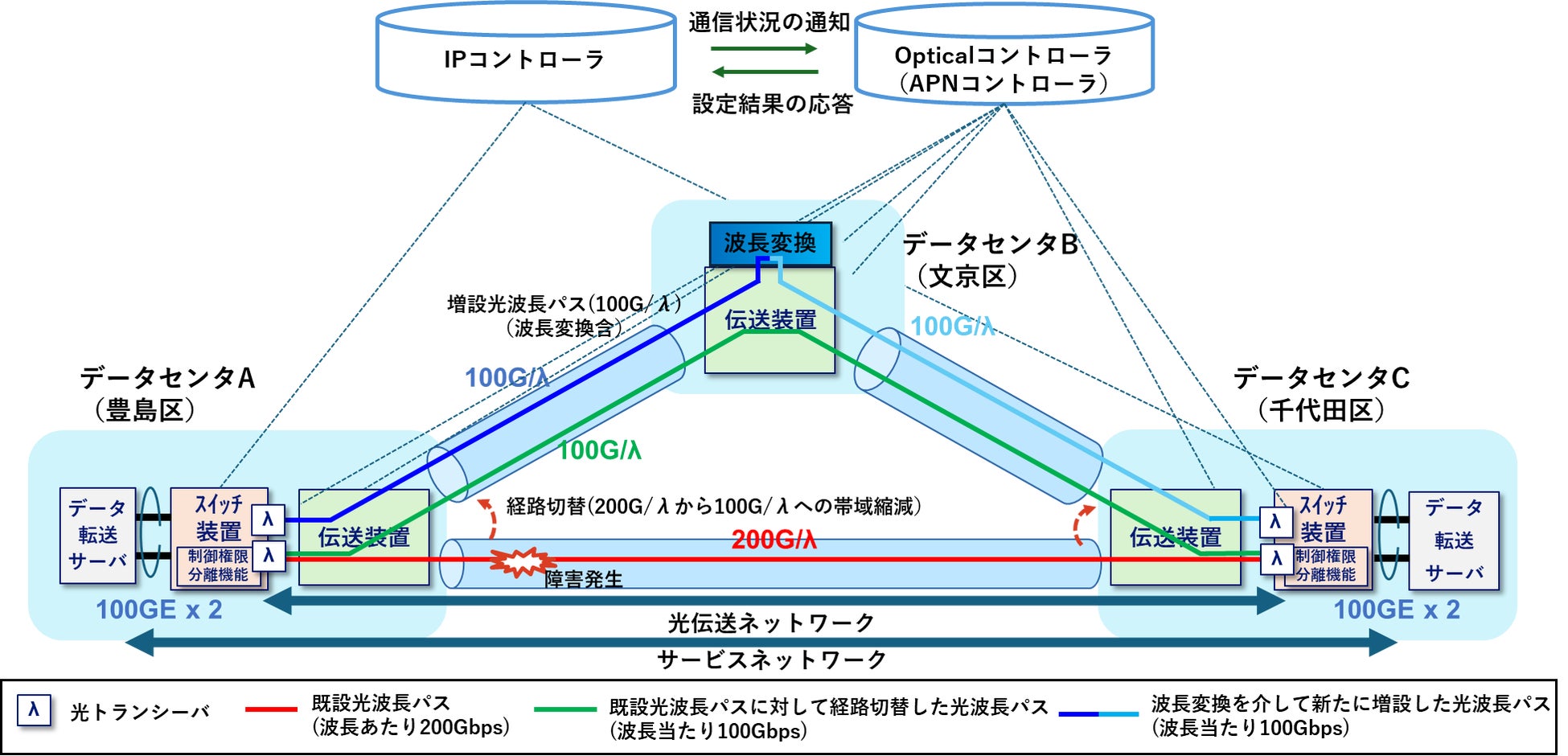 世界初、通信状況に応じた光伝送レイヤの自動制御により、短時間で光波長パスを経路切替・追加する技術の実証に成功