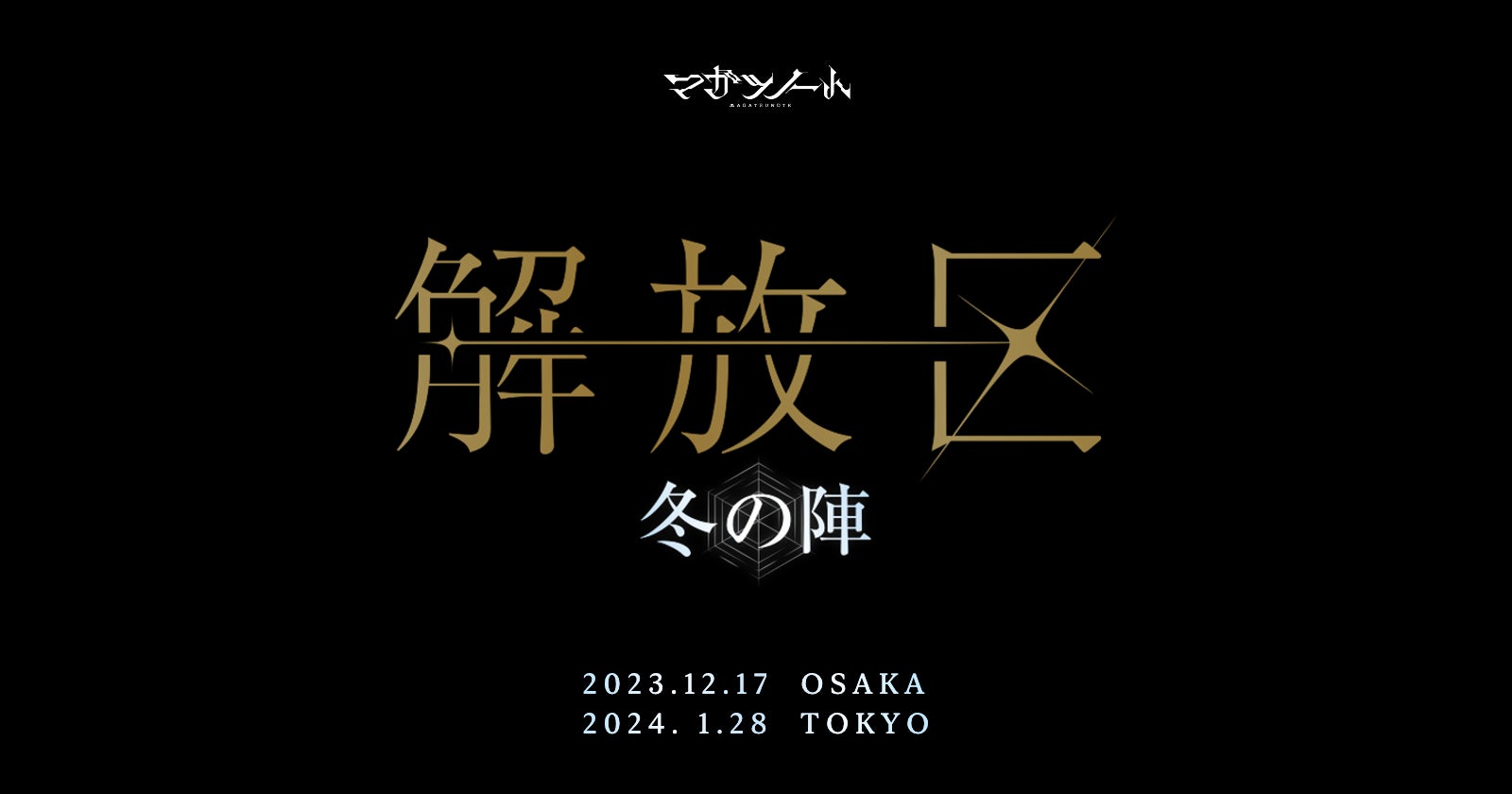 出演声優とコラボアーティストが集結し、ライブステージで『マガツノート』の世界観を創り上げる大型ライブイベント第3弾「解放区-冬の陣-」について、大阪・東京2都市での開催が決定いたしました。ライブイベント初参加となる岡本信彦や野島健児ら総勢10名超の声優が参加し、HAZUKIやluz(ルス)ら豪華コラボアーティストと共演いたします。10月15日(日)にホリーホックの新コラボ楽曲アーティストとして起用が発表されたAshmaze.も、12月17日(日)開催の大阪公演に初参加します。出演者の続報など、今後の詳細は公式X(旧Twitter)で順次発表いたします。