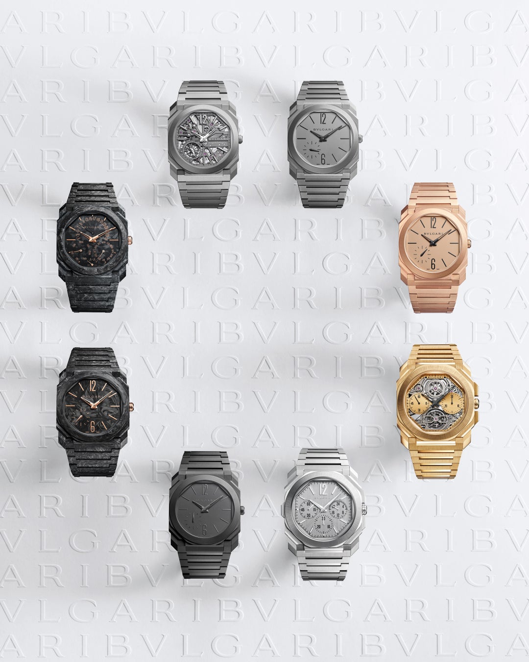 ゴールドのみならずチタンやセラミックといったハイテク素材も熟知しているブルガリは驚きに満ちた独創的な組み合わせを得意としており、「トゥボガス」ブレスレットをはじめとするスティール製のジュエリーウォッチを最初に製作したメゾンのひとつです。また精巧さが際立つ「オクト フィニッシモ」ではプラチナ、イエローゴールド、ピンクゴールド、チタン、セラミック、そしてもちろんスティールなどの素材の技術的、審美的な可能性を追求しポリッシュ仕上げやブラッシュ仕上げ、マット仕上げ、モノクロームなどさまざまな表面加工を打ち出してきました。
