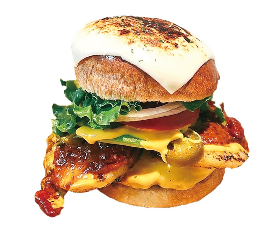 厳選された牛肉100%のジューシーなパティに、スパイシーなチリコンカン、甘く香ばしいグリルドパイナップル、濃厚なチェダーとゴーダチーズ、ピリ辛のハラペーニョ、クリーミーなアボカド、とろける炙りチーズの7種類をトッピング。