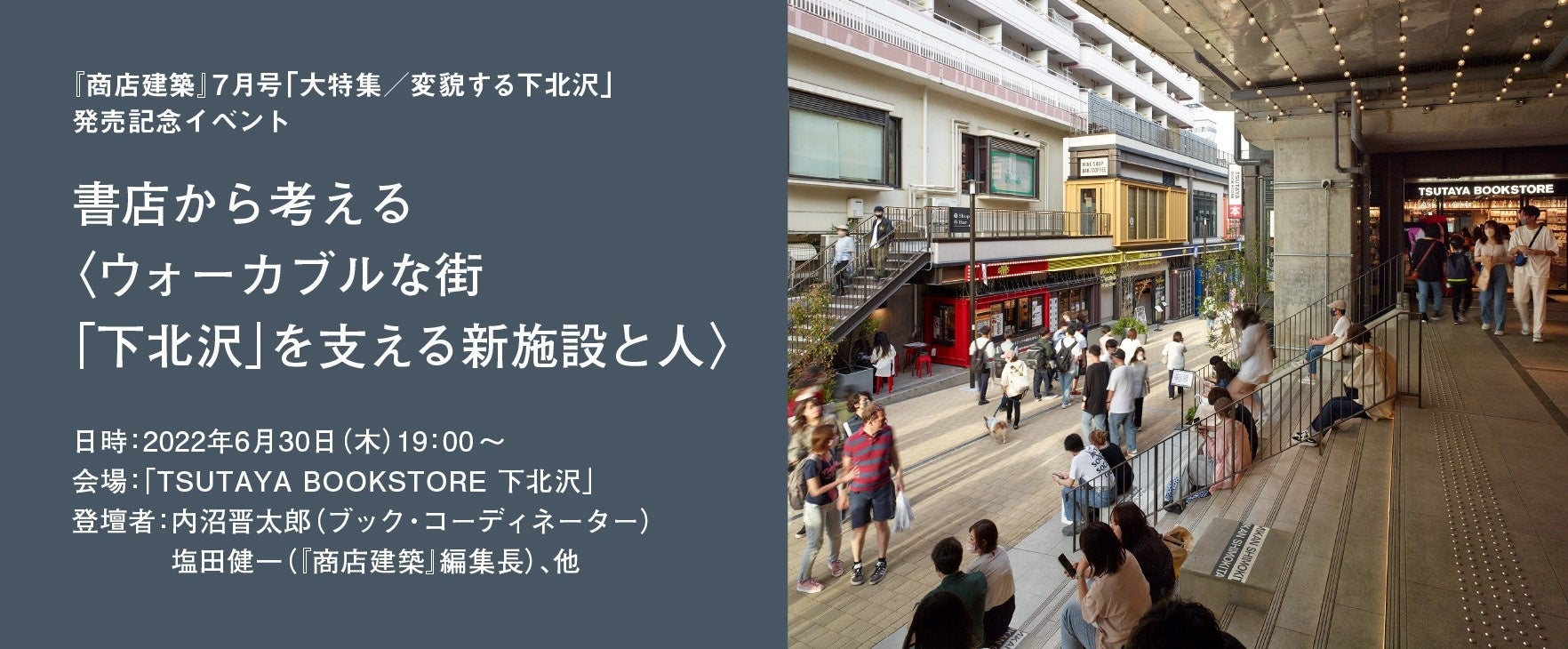 「書店から考える〈ウォーカブルな街「下北沢」を支える新施設と人〉」6月30日(木)「TSUTAYA BOOKSTORE 下北沢」にてイベント開催決定