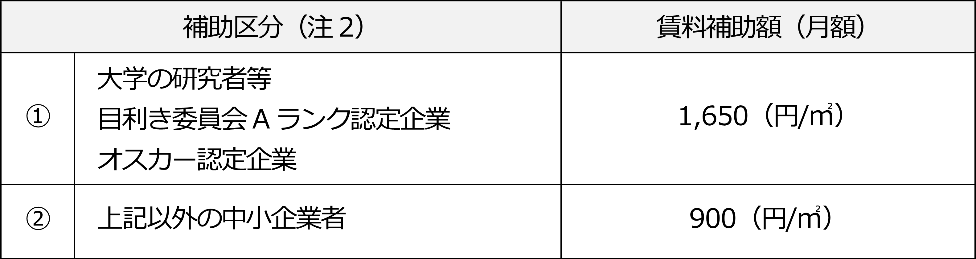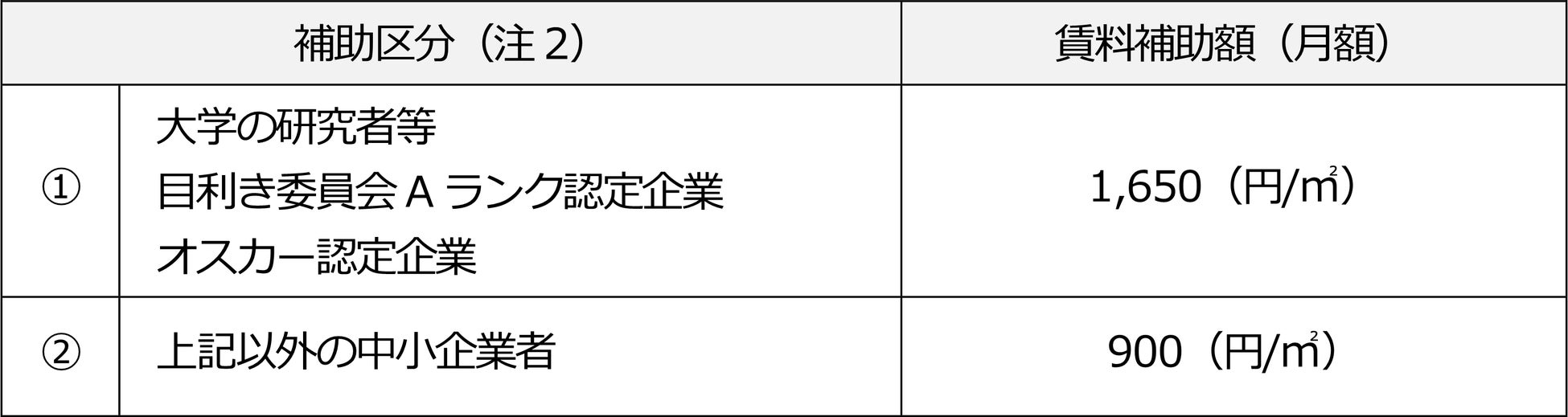 (1ヶ月当たりの補助金額・上限100平方メートル)