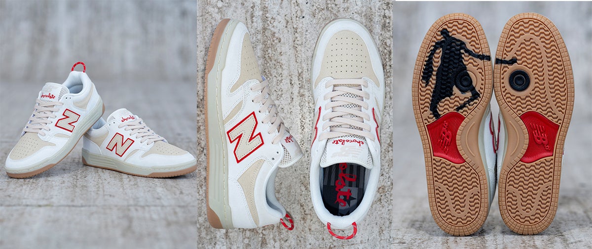 バスケットスタイルのコートモデルをNumeric(ヌメリック)仕様にアップデートした「480」と、1994年にGIRLの姉妹ブランドとして誕生した「Chocolate Skateboards」の30周年を記念したスペシャルなコラボレーションモデルが実現しました。数量限定でニューバランス公式オンラインストア、その他一部のニューバランス ヌメリック取扱い店にて発売中です。