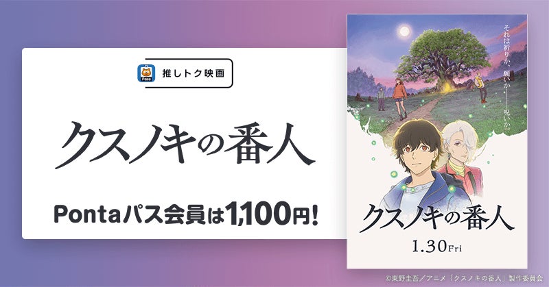 ■Pontaパス会員特典【推しトク映画】概要 映画『クスノキの番人』が土日平日いつでも1,100円